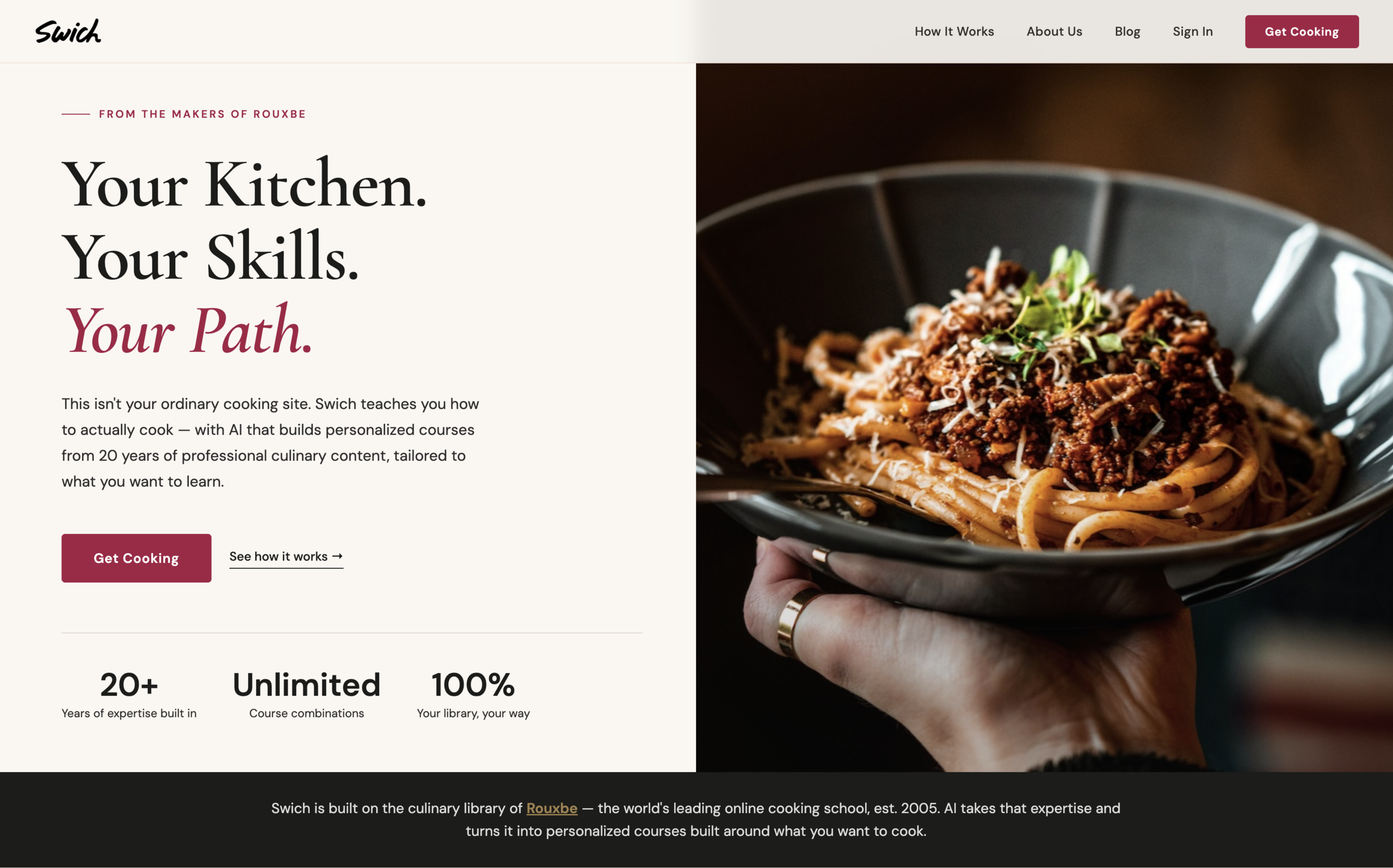 Swich takes that library and builds personalized courses around what you actually want to cook.