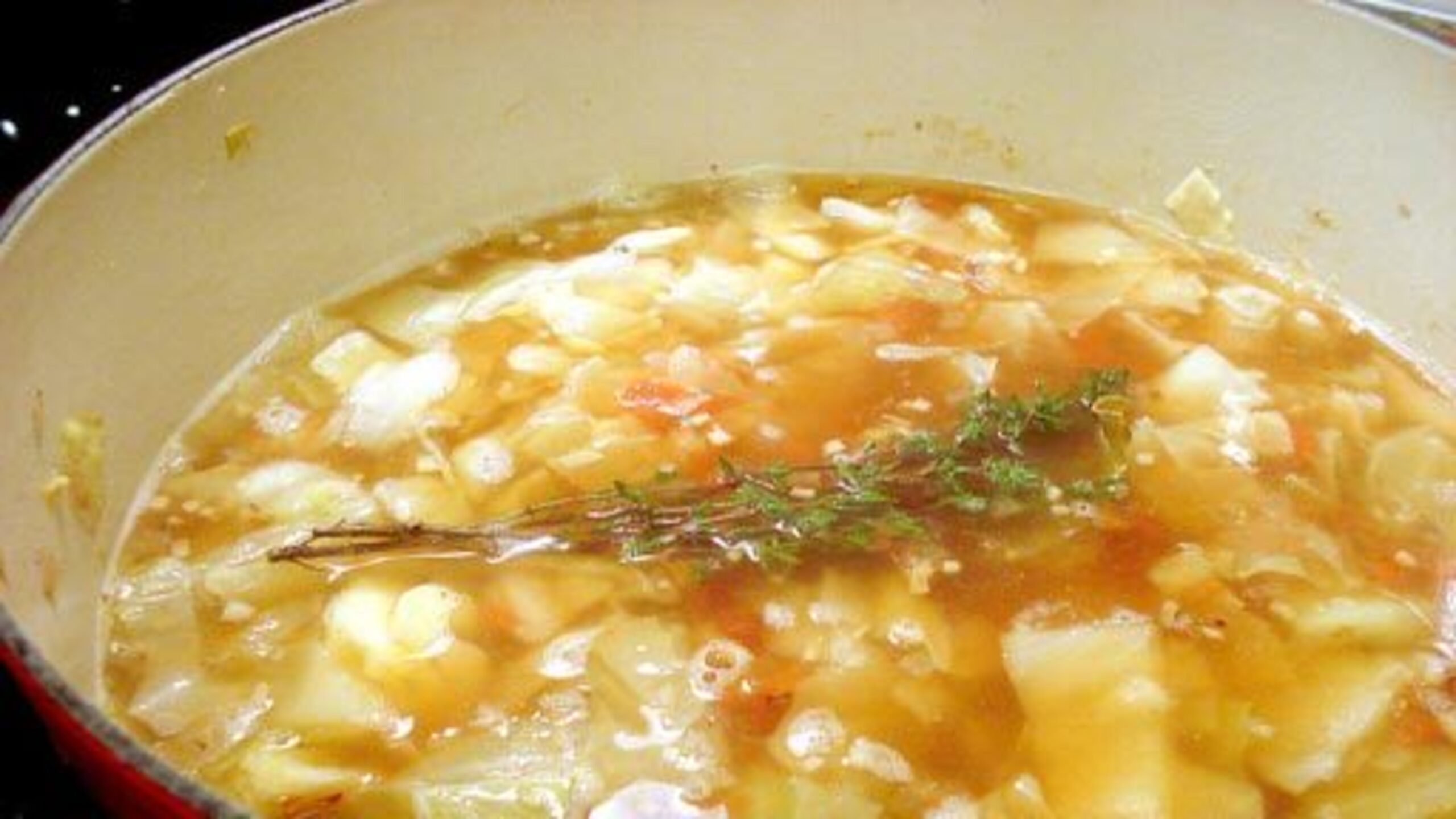 As the soup comes to a simmer, gather the herbs and seasonings. Add them to the soup and let simmer for about 15 minutes or so to infuse.