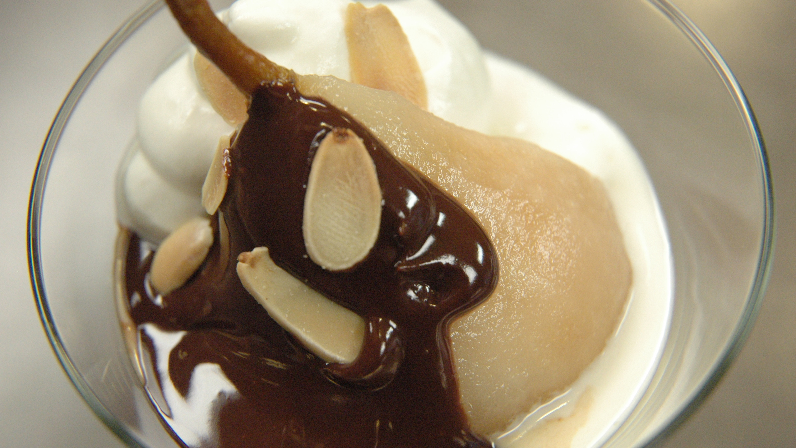 Poire Belle Hélène is a dessert made from pears poached in sugar syrup and served with vanilla ice cream, chocolate sauce and Chantilly cream. Apparently, Poire Belle Hélène was created in the late 1800’s by Escoffier and named after the operetta “La belle Hélène”.
